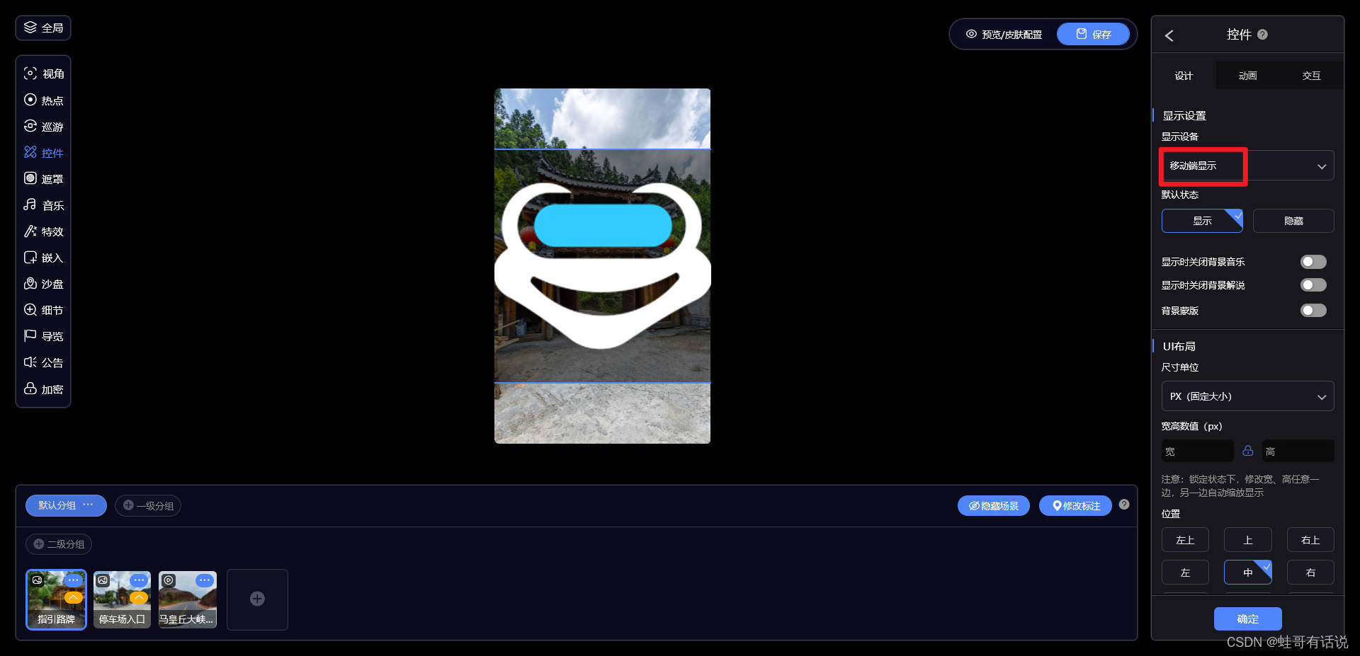 注意:桌面端和移动端是两个UI布局,可以单独设置控件位置和大小。