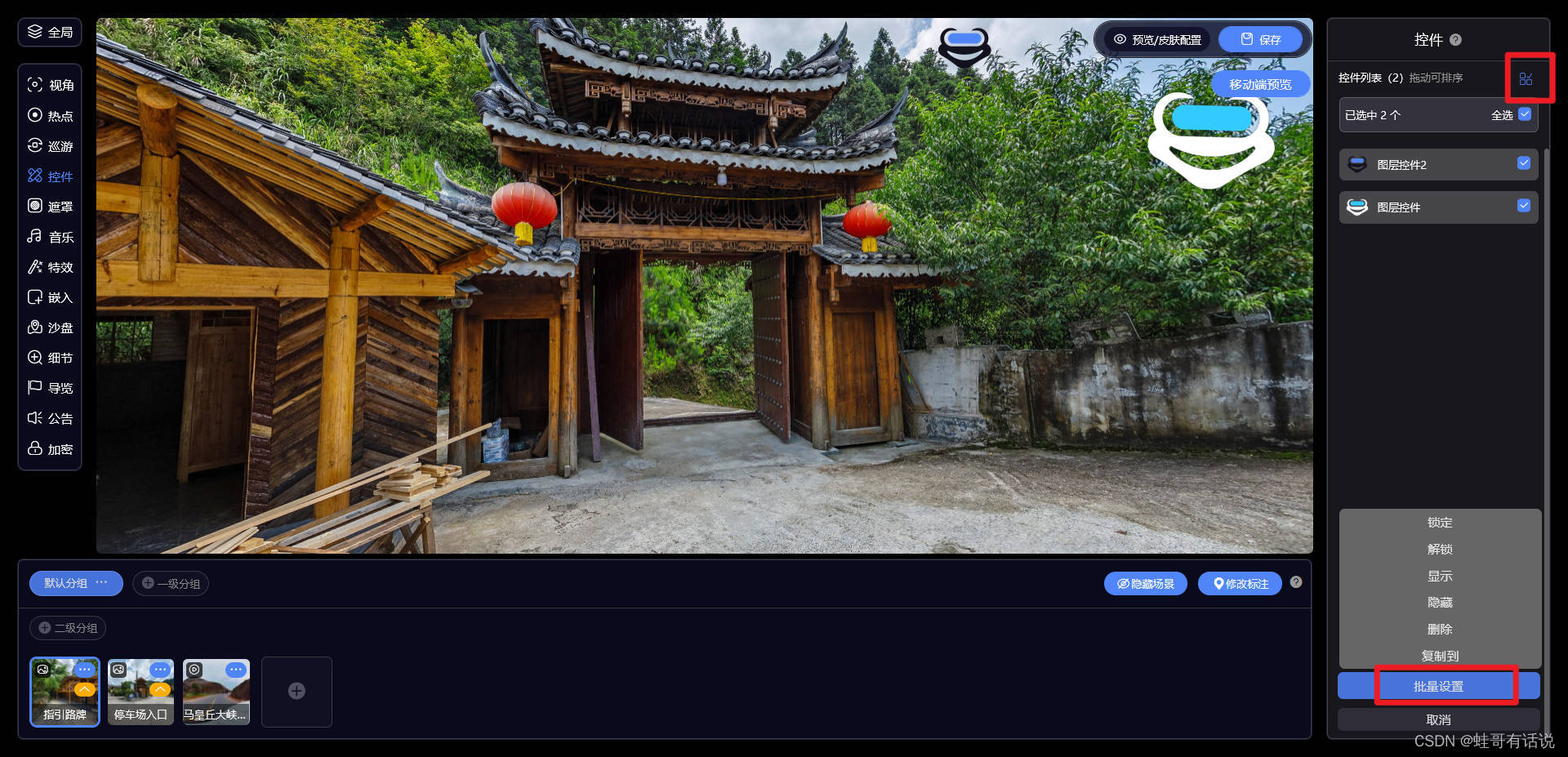 大家好,欢迎观看蛙色VR官方——后台使用系列课程!这期,我们将为大家介绍如何使用图层控件功能。