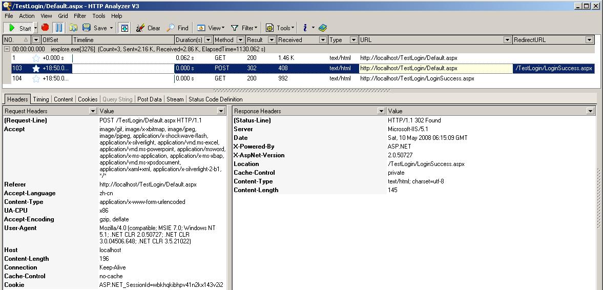 二、抓包分析:通过抓包,初步了解登录网站需要的数据。这里使用HTTP Analyzer工具进行抓包,进行抓包时,应关闭其他可能访问网络的软件,减少其他无用包对数据分析造成影响。