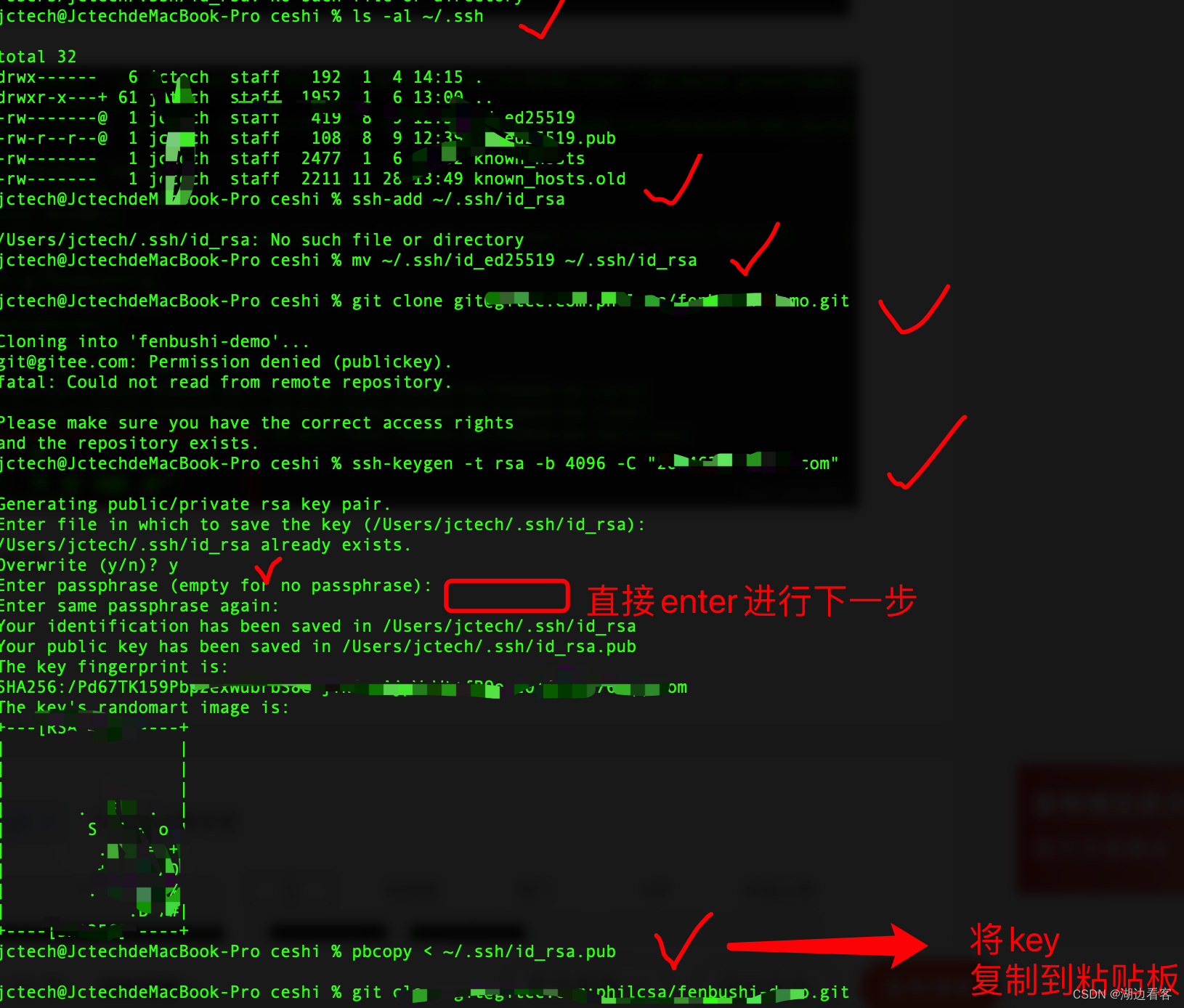 执行下面的将key生成,并粘贴新的key到代码仓库SSH公钥