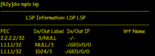 [R2y-GigabitEthernet0/0/1]mpls ldp