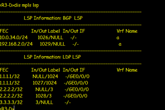 [R3-D-GigabitEthernet0/0/1]mpls//非常重要要分配标签实现ASBR-PE间的普通路由传递