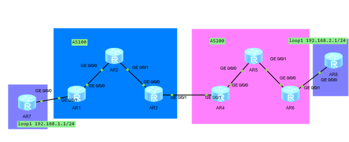 R3与R4用于对接使用OSPF,两端接入使用BGP