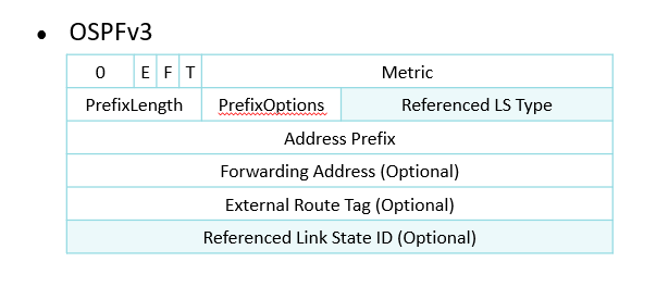 F:标识存在FA字段; T:标识存在外部路由tag字段(ExternalRouterTag)