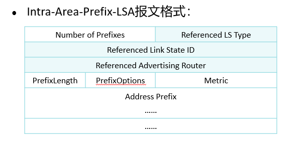用于描述相关网段信息,补充1,2类路由,根据ReferencedLSType字段和ReferencedLinkStateID以及ReferencedAdvertisingRouter标识具体补充的LSA