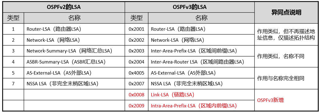 OSPFv3是OSPF用于IPv6网络中的新版本,其将报文进行重构并保存OSPFv2原有的工作原理