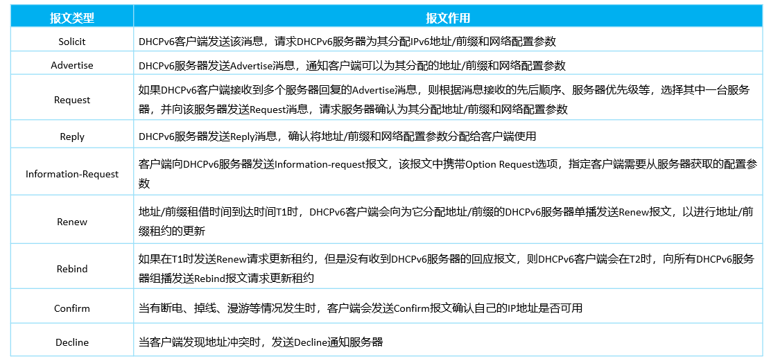 DHCPv6依旧保持IPv4的3种角色:客户端,服务器,中继,并对某些地方进行改进