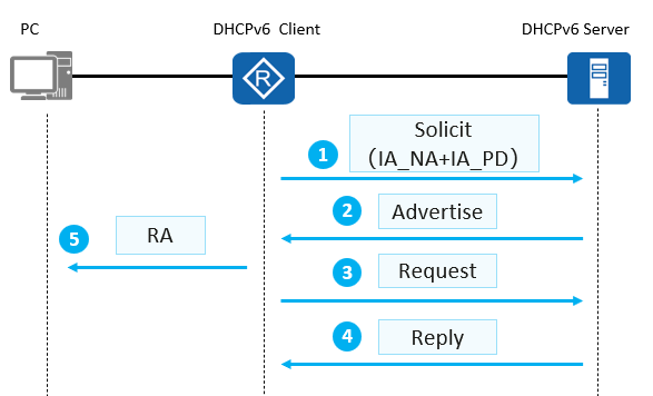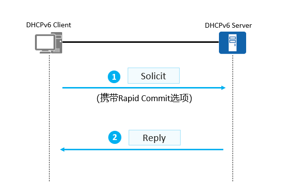 发送带Rapid Commit选项的Solicit,如果对端支持快速模式,直接回应Reply报文进行地址分配