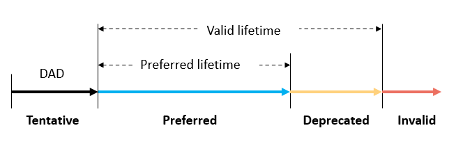 Deprecated:地址仍然有效,但无法建立新的连接,当该Valid lifetime超时状态转为Invalid