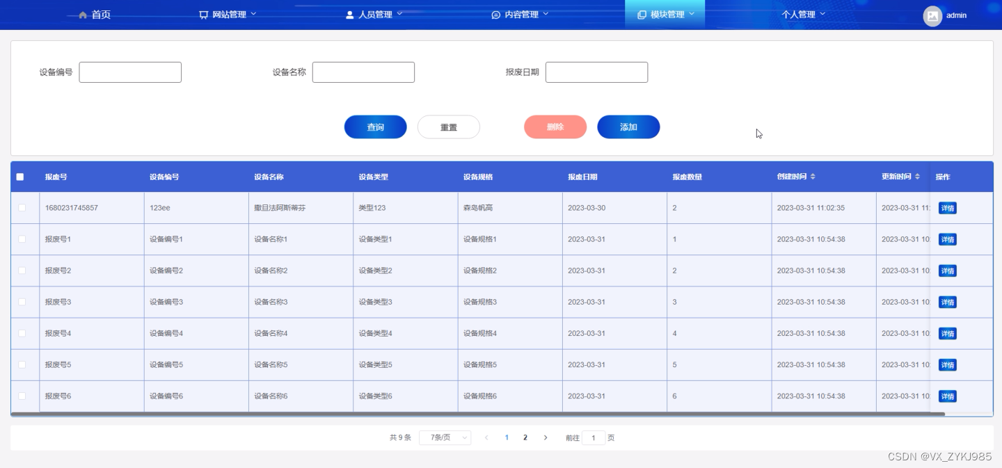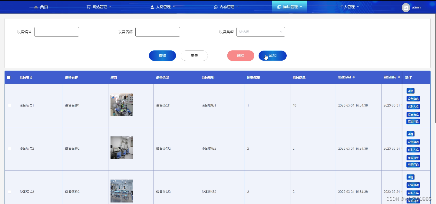 设备信息管理界面如下图所示。