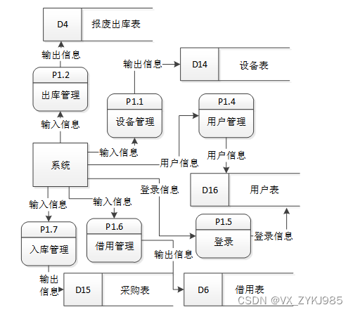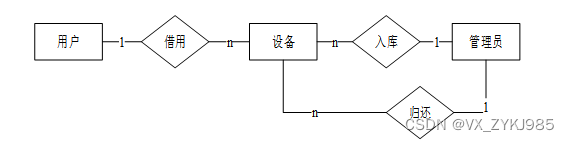 普通用户和设备存在借用关系,关系为一对多,根据设备编号来将设备数据传入到借用数据中,操作人为普通用户,然后生成借用列表,普通用户查看个人历史借用列表,可以进行数据销毁。