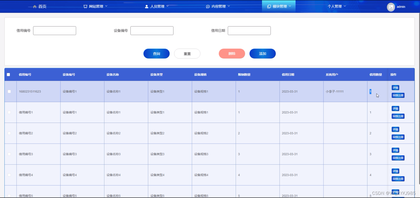 管理设备借用数据。