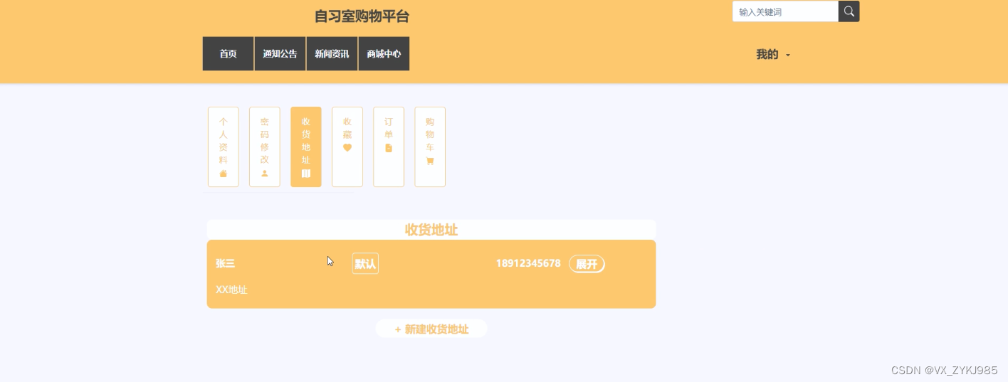 当用户点击“收货地址”右后,就回去显示出目前现有的地址,也可以添加新的地址,界面如下图4-5所示。