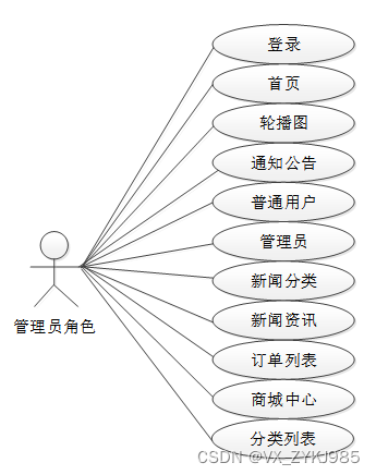 web后台管理上的管理员是维护整个自习室购物平台中所有数据信息的。管理员角色用例如图2-4所示。