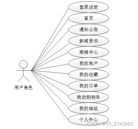 通过2.3功能的分析,得出了本自习室购物平台的用例图: