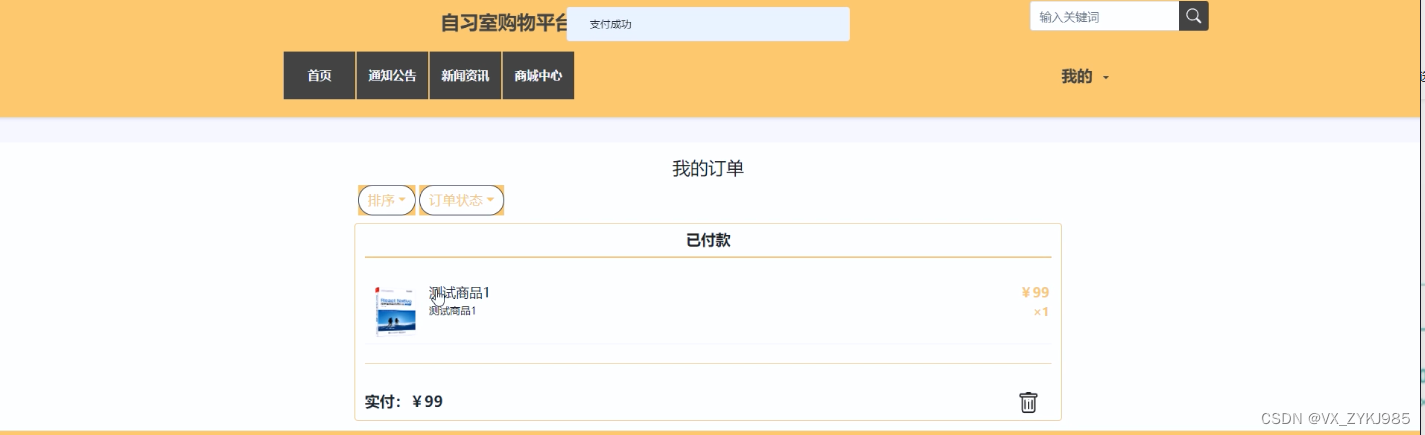 (5)我的订单:用户在提交订单后,可以对提交的订单进行管理。