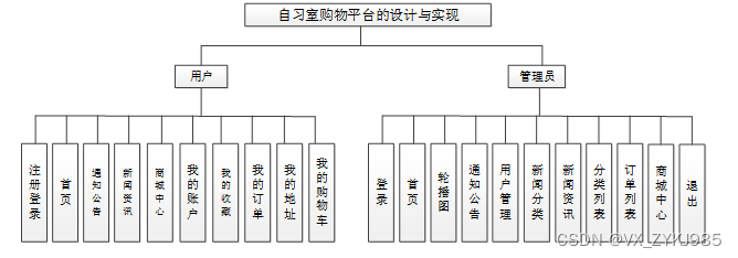 自习室购物平台是中需要存储不少商品信息,其模块功能结构,具体的结构图如下: