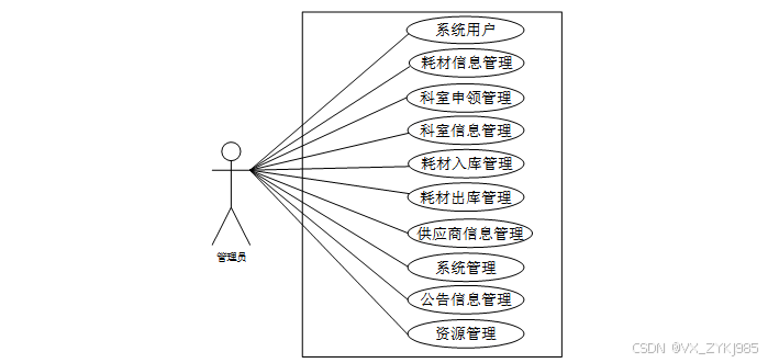 医用耗材管理系统中管理员角色用例图如图2-2所示: