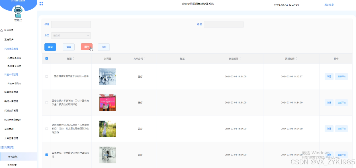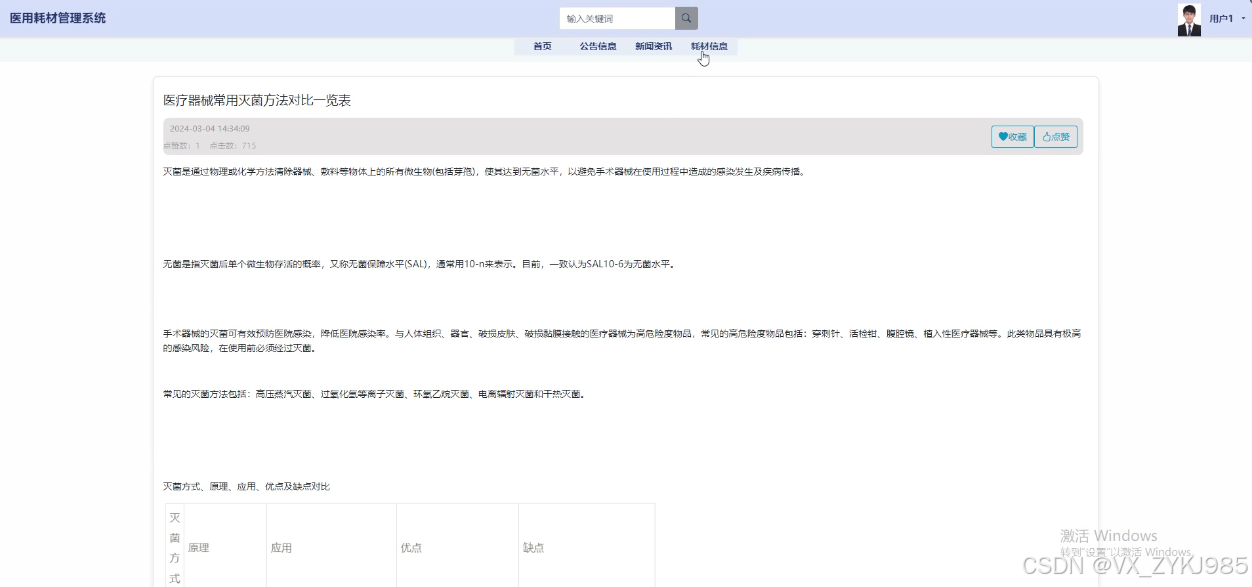 关键词:医用耗材管理系统;Java语言;Vue+Springboot;MySQL数据库