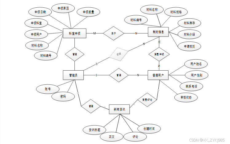 下面是整个医用耗材管理系统中主要的数据库表总E-R实体关系图。
