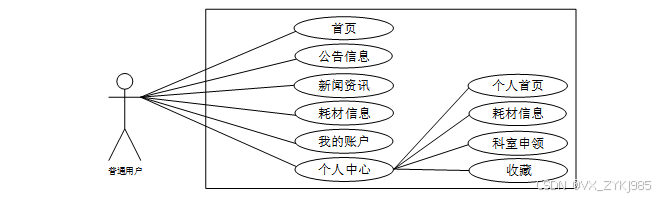 医用耗材管理系统中普通用户角色用例图如图2-1所示: