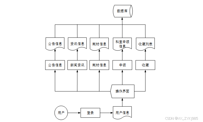 开发基于Vue+Springboot的医用耗材管理系统最主要的一个目的就是实现用户在线浏览耗材信息和申领耗材的便捷,系统的业务流程图如下所示。