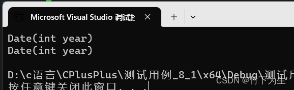 上面代码的两种方法其实都是调用了构造函数,但是其实底层的原理稍有区别,第一种就是单纯的调用构造函数,第二个本质其实是发生了隐式类型转换,先调用构造函数创建了一个临时的Date类型的变量,再拷贝构造给b,但是编辑器将这个过程优化成了直接调用构造函数,如下