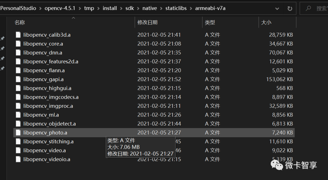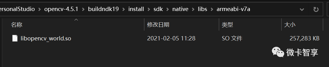 这些完成后直接编译后,就生成了文章开头那个250M的动态库,此时的内心是崩溃的,这东西完全不能用。最后还是要感谢呱呱,把他编译好armeabi-v7a和arm64-v8a的libopencv_java4.so发给了我,喜欢OpenCV或Android的朋友也推荐关注下。