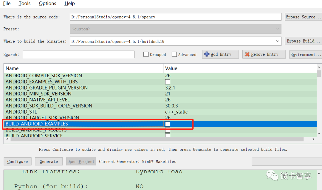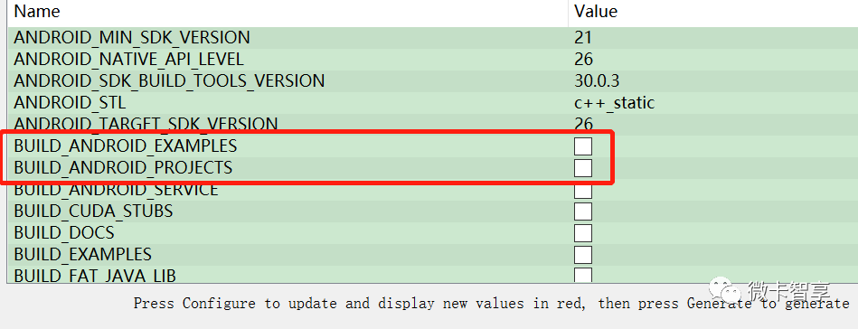 BUILD_ANDROID_EXAMPLES和BUILD_ANDROID_PROJECTS的勾去掉