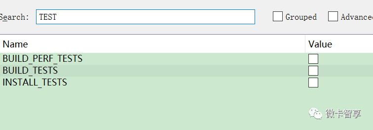 将BUILD_PREF_TEST和BUILD_TESTS的勾去掉。