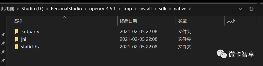 编译完后可以看到,native的目录下没有libs的文件夹,只有staticlibs的,进去后全是静态库,完全没有我想到的libopencv_java4.so动态库。