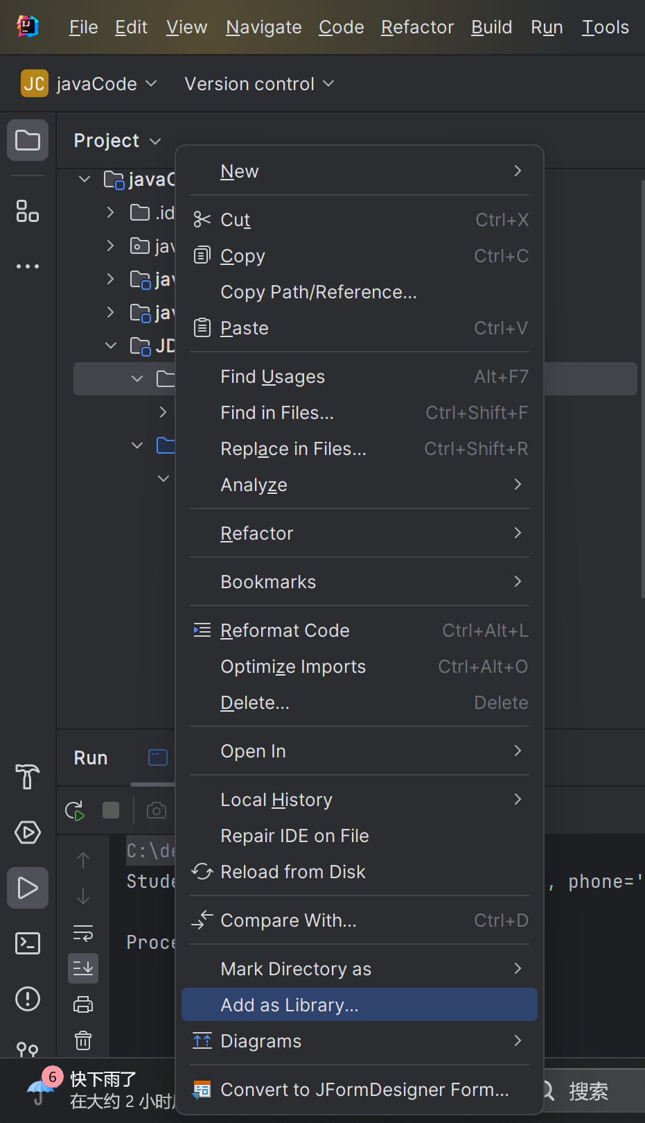 3.lib文件右键As and Library 就将sql驱动导入到项目中了