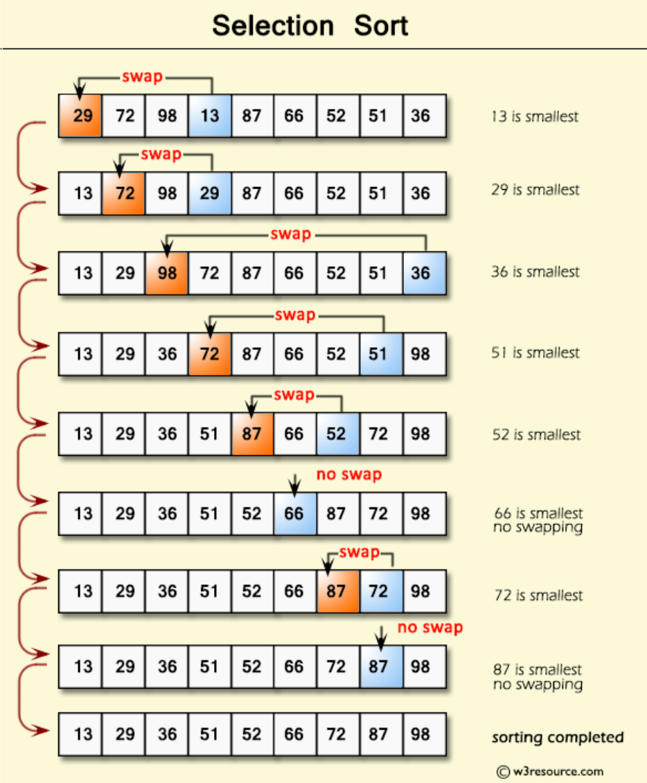 选择排序就是重复“从待排序的数据中寻找最小值,将其与序列最左边的数字进行交换”这一操作的算法。在序列中寻找最小值时使用的是线性查找。