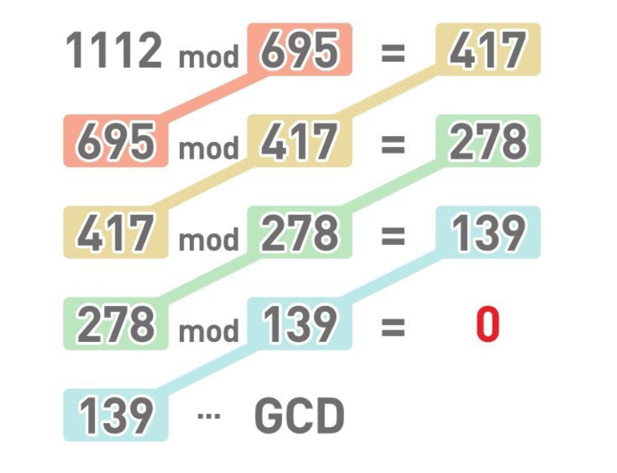欧几里得算法(又称辗转相除法)用于计算两个数的最大公约数,被称为世界上最古老的算法。