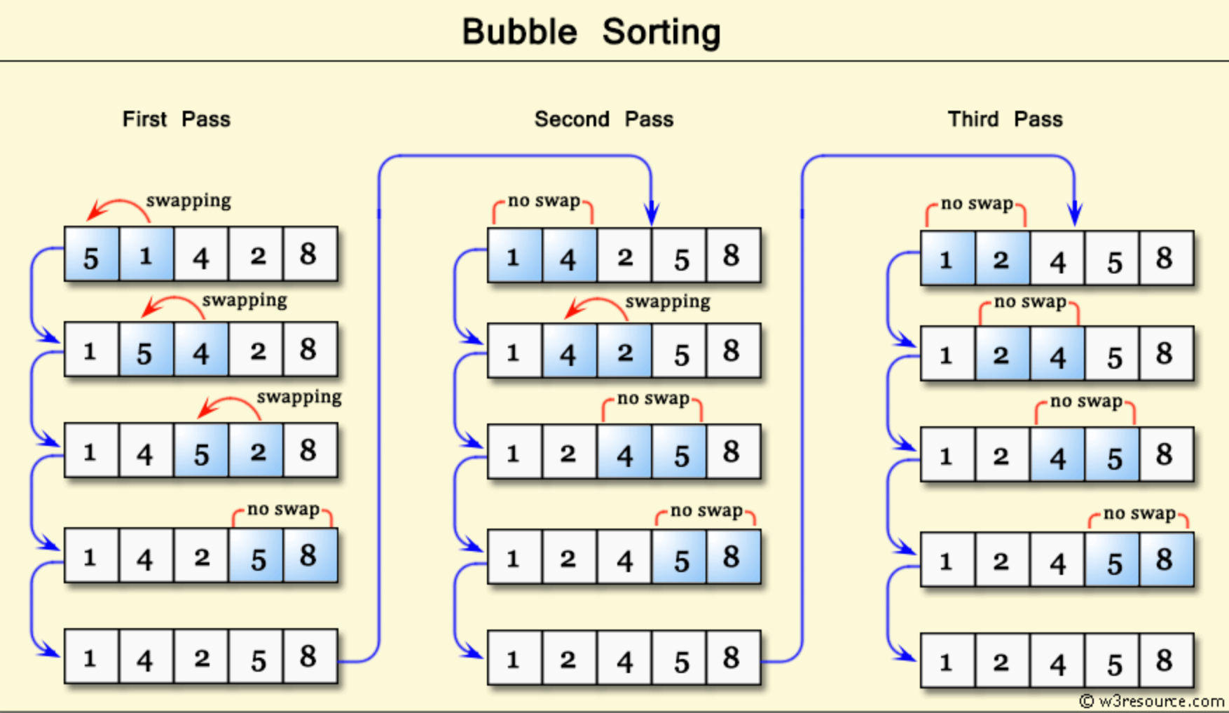 冒泡排序就是重复“从序列右边开始比较相邻两个数字的大小,再根据结果交换两个数字的位置”这一操作的算法。在这个过程中,数字会像泡泡一样,慢慢从右往左“浮”到序列的顶端,所以这个算法才被称为“冒泡排序”。
