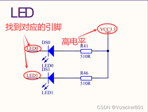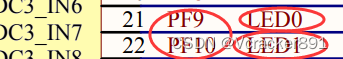 1、先查原理图,查看LED的引脚和电平,高电平拉低可点亮、引脚为PF9和PF10