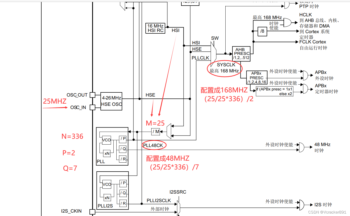 1、直接使用函数配置 RCC_PLLConfig(RCC_PLLSource_HSE, 8, 336, 2, 7, 0)