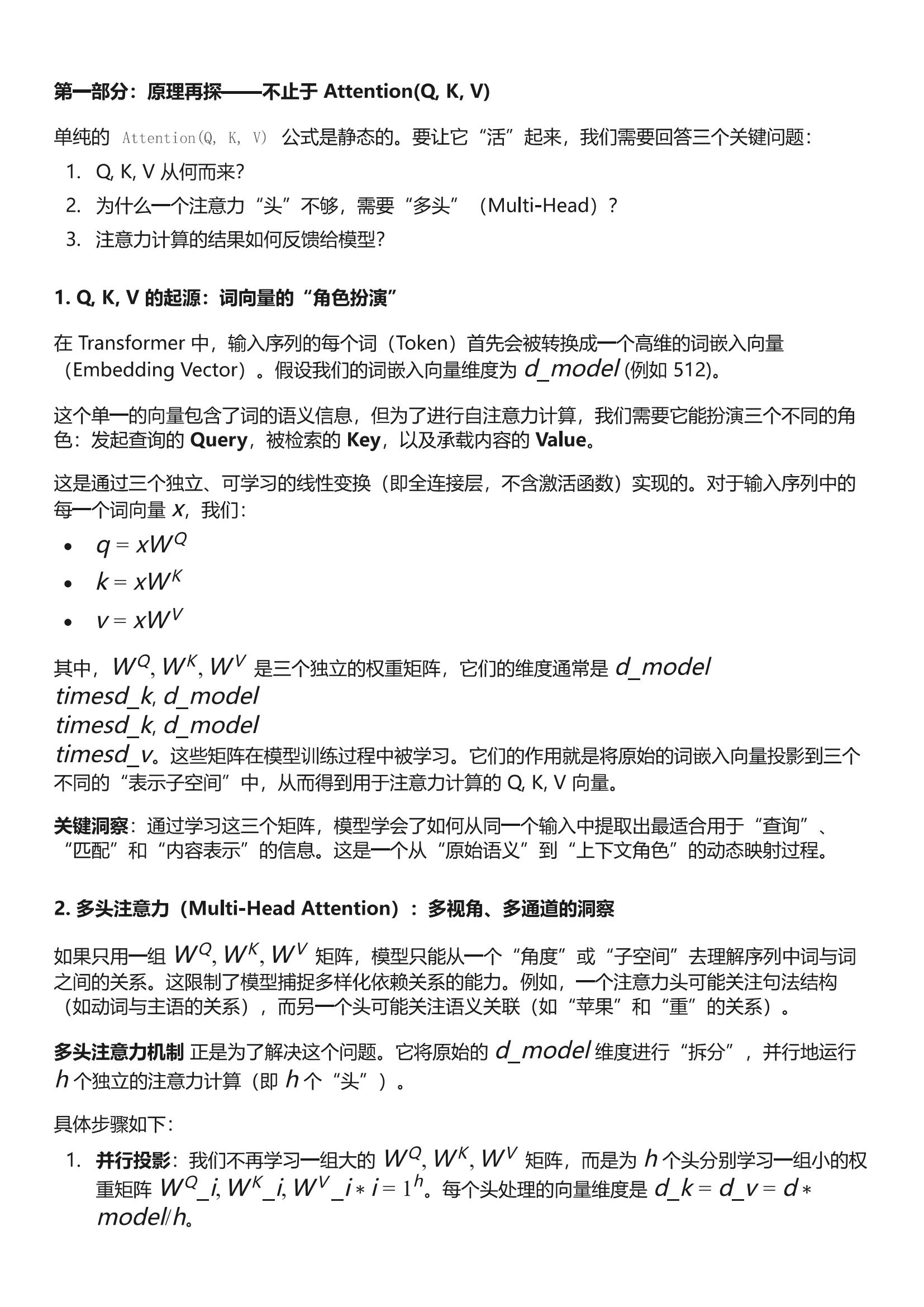 第一部分:原理再探——不止于 Attention(Q, K, V)