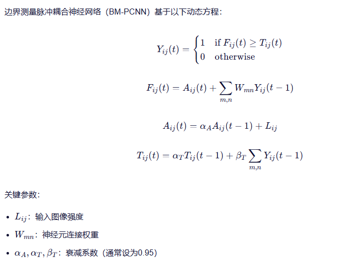 边界测量脉冲耦合神经网络(BM-PCNN)基于以下动态方程: