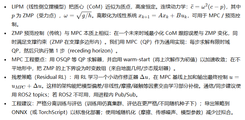 python walking_balance_demo.py --episodes 40 --horizon 40加速使用 osqp: