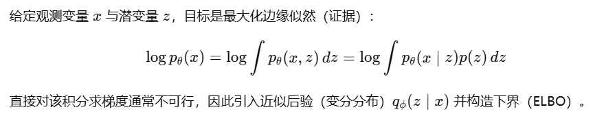 1. 一般隐变量模型与证据下界(ELBO)的严格推导