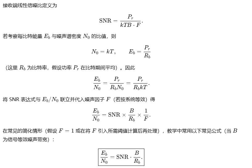 2.2.4 SNR、Eb/N0E_b/N_0Eb/N0 与带宽/速率关系的严谨表达