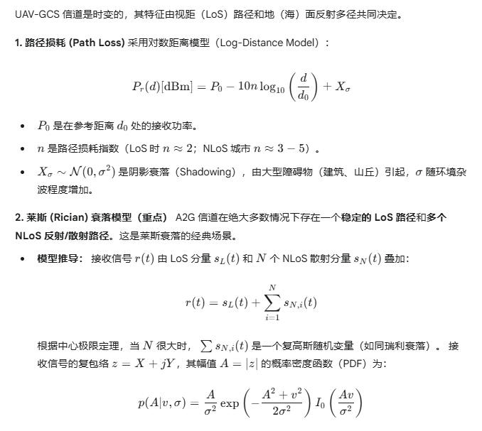 # 1. 应用莱斯衰落 (模拟 A2G LoS + NLoS)