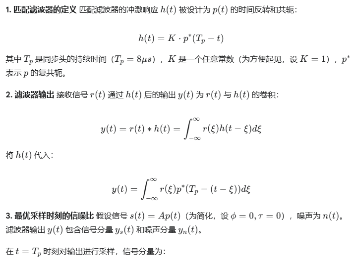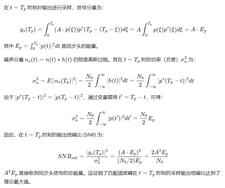 对于在AWGN中检测已知波形 $p(t)$ 的问题,**匹配滤波器(Matched Filter)**是实现最大输出信噪比(SNR)的最优线性时不变(LTI)系统。
