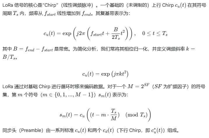 工业物联网(IIoT)场景(如远程阀门控制、环境监测)通常使用低功耗广域网(LPWA)技术,如 LoRa(Long Range)。LoRa 采用线性扩频(Chirp Spread Spectrum, CSS)技术,以极低的信噪比(SNR)实现远距离通信。检测此类信号是 IIoT 安全监控的关键。