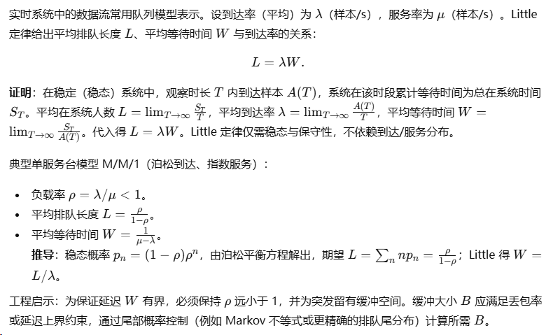 实时处理必须从采样定理、排队理论与并行度的角度共同设计以满足延迟约束;