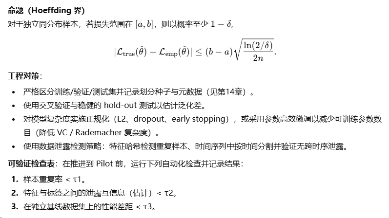 本节把常见工程陷阱形式化为“风险源 + 理论证据 + 对策”,并给出可验证的修复/缓解措施。关键陷阱包括:过拟合与数据泄露、分布漂移与性能退化、数值/并行不确定性、运维复杂度与技术债务。