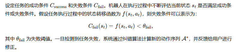 交互式纠错机制的目标是当机器人在执行过程中遇到问题时,能够及时识别并进行修正。常见的纠错方式包括: