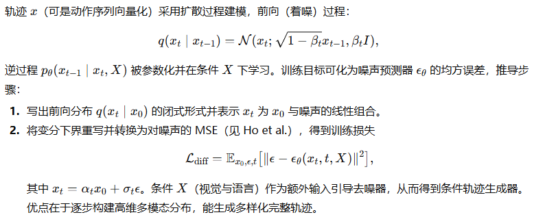 (三)条件扩散模型用于轨迹生成(简化推导)。