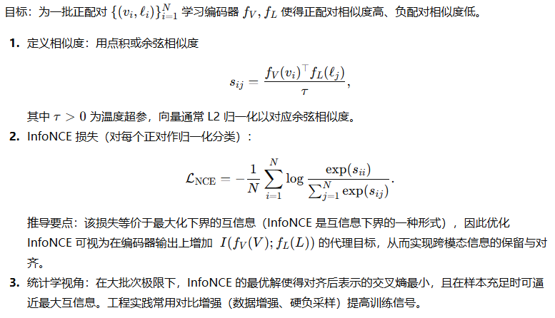 (一)对比学习(InfoNCE / 对齐损失)的推导与实现。